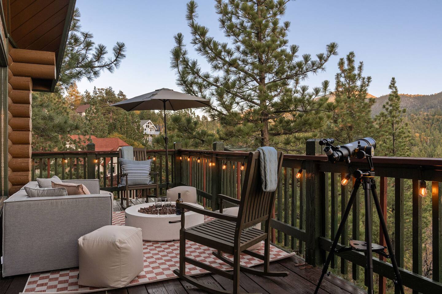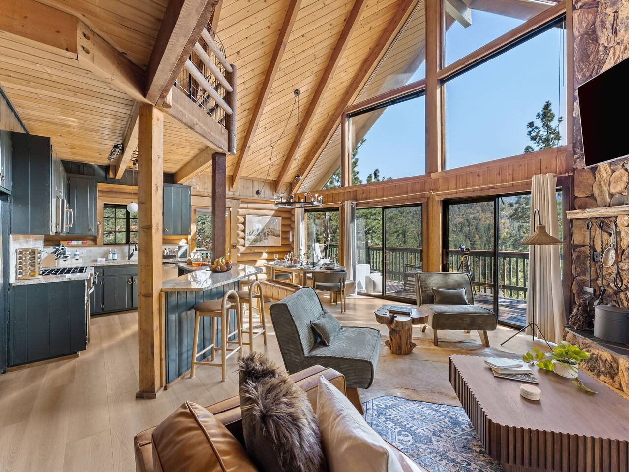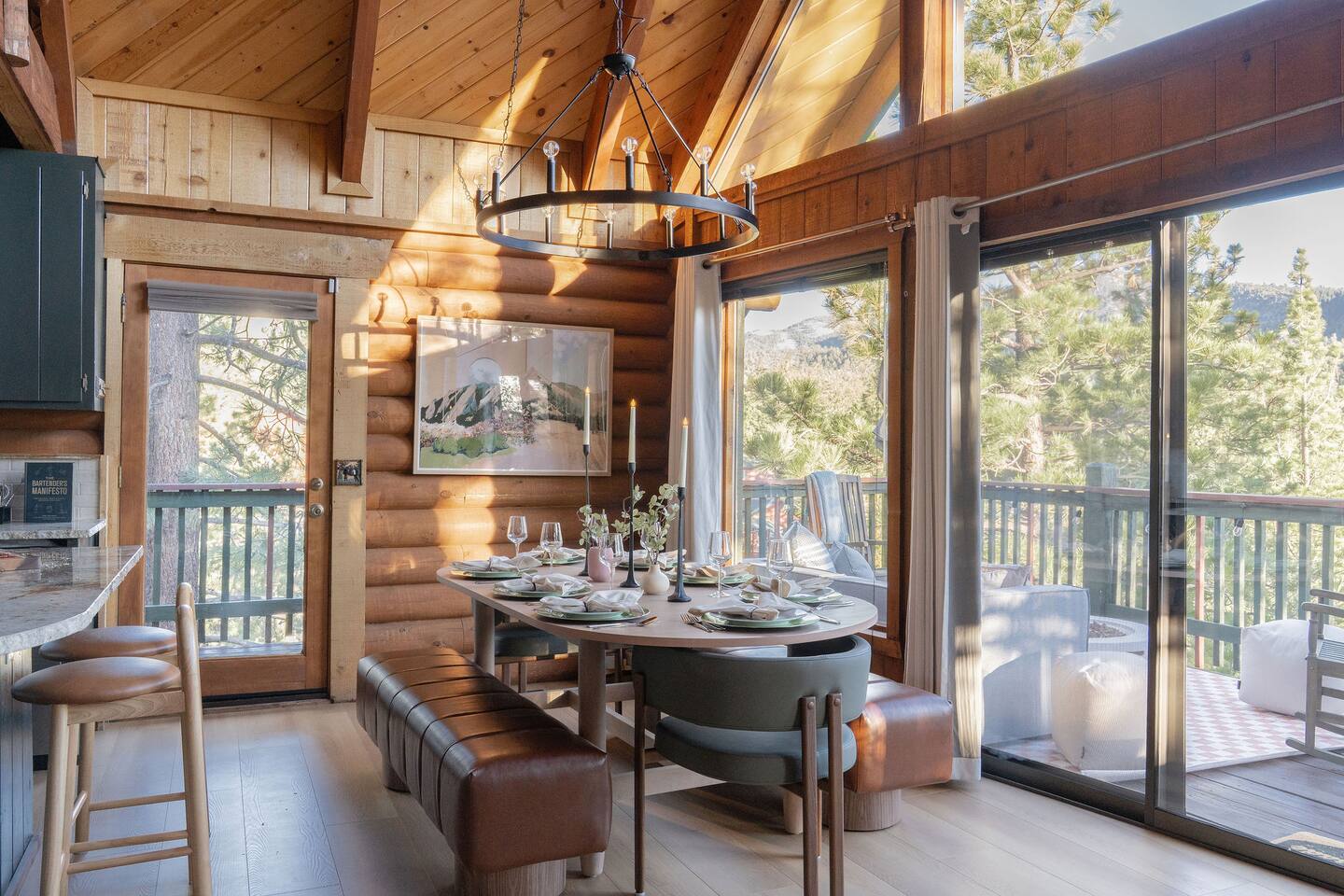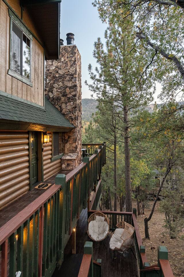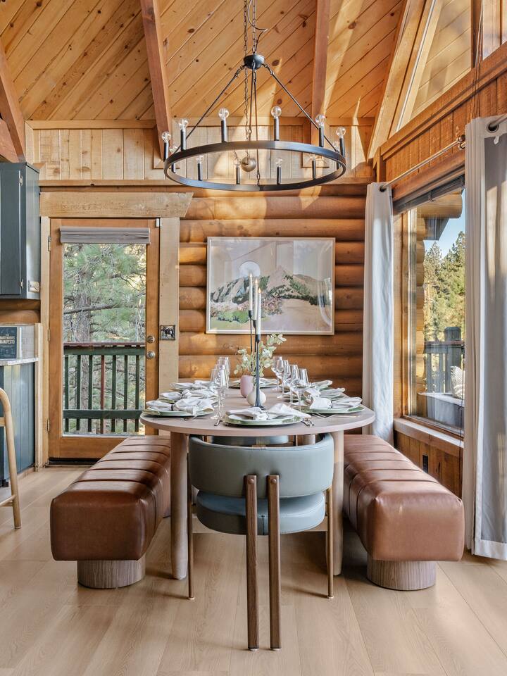 Welcome to The Colusade, a 2,800 sf luxury log cabin in the desirable upper moonridge neighborhood of Big Bear Lake. Enjoy breathtaking panoramic views of the surrounding mountains from this rustic retro escape that balances charm with upscale amenities. The Colusade offers something for everyone, whether you’re looking to get out on the slopes or relax at home in the cabin. Bring the whole family – your four-legged member as well!
