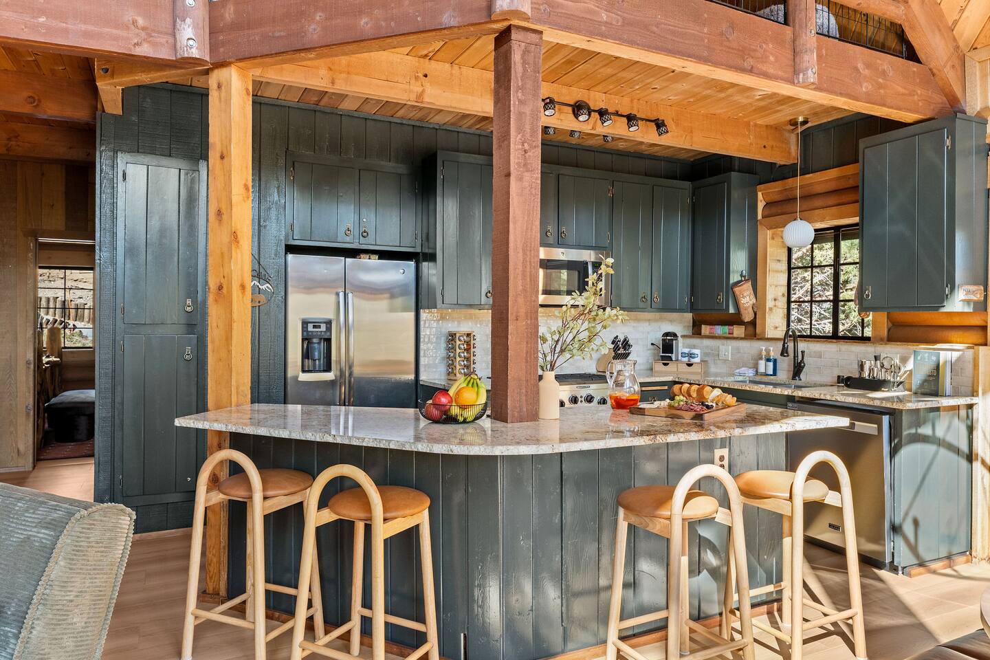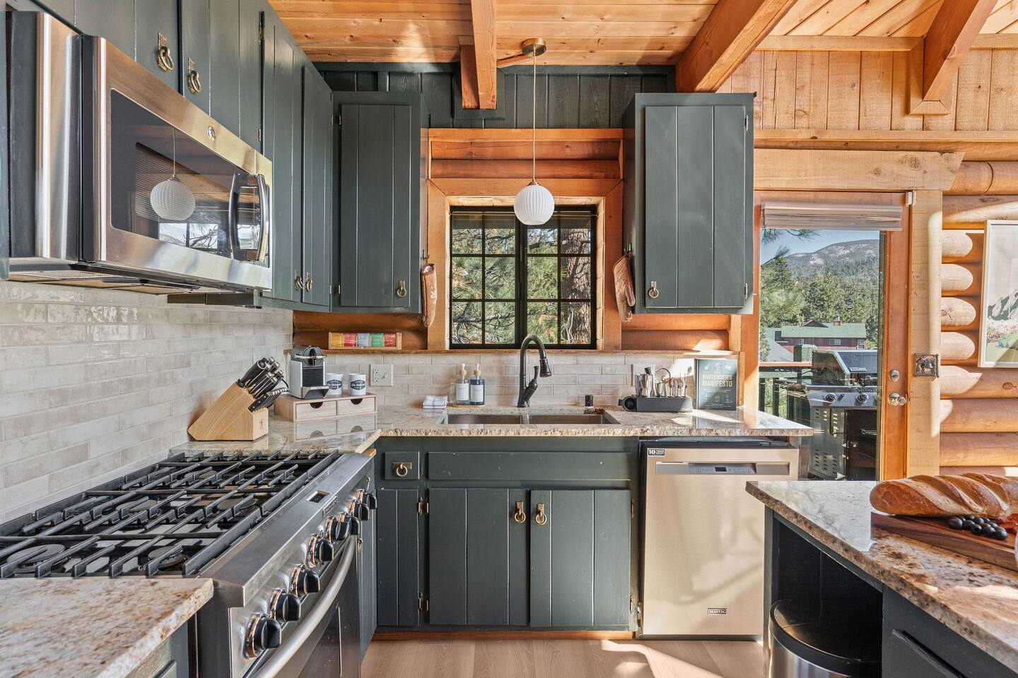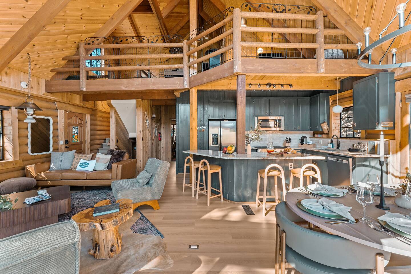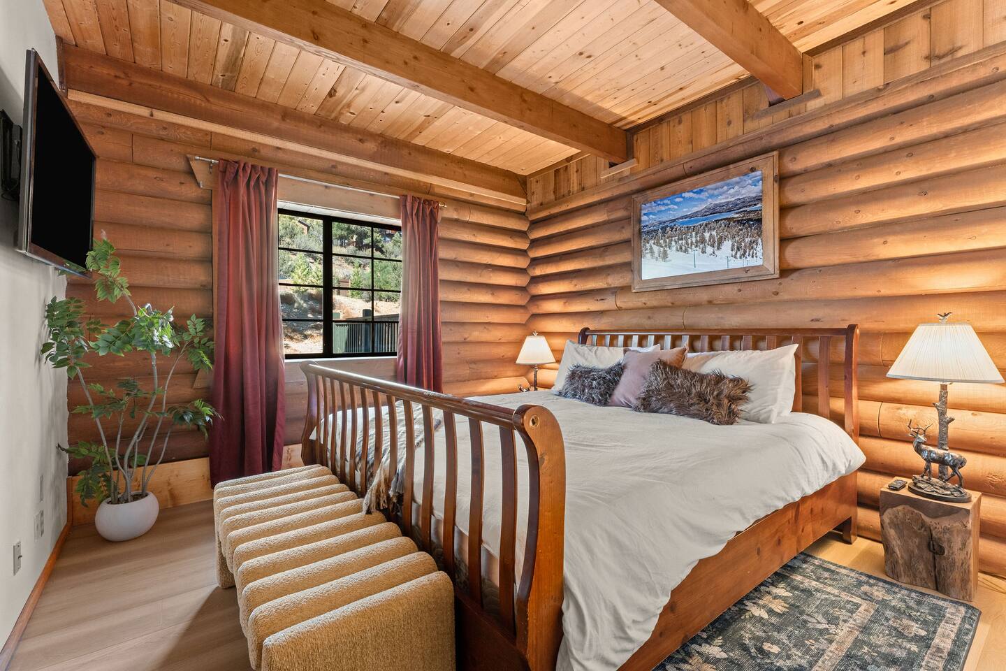 Welcome to The Colusade, a 2,800 sf luxury log cabin in the desirable upper moonridge neighborhood of Big Bear Lake. Enjoy breathtaking panoramic views of the surrounding mountains from this rustic retro escape that balances charm with upscale amenities. The Colusade offers something for everyone, whether you’re looking to get out on the slopes or relax at home in the cabin. Bring the whole family – your four-legged member as well!