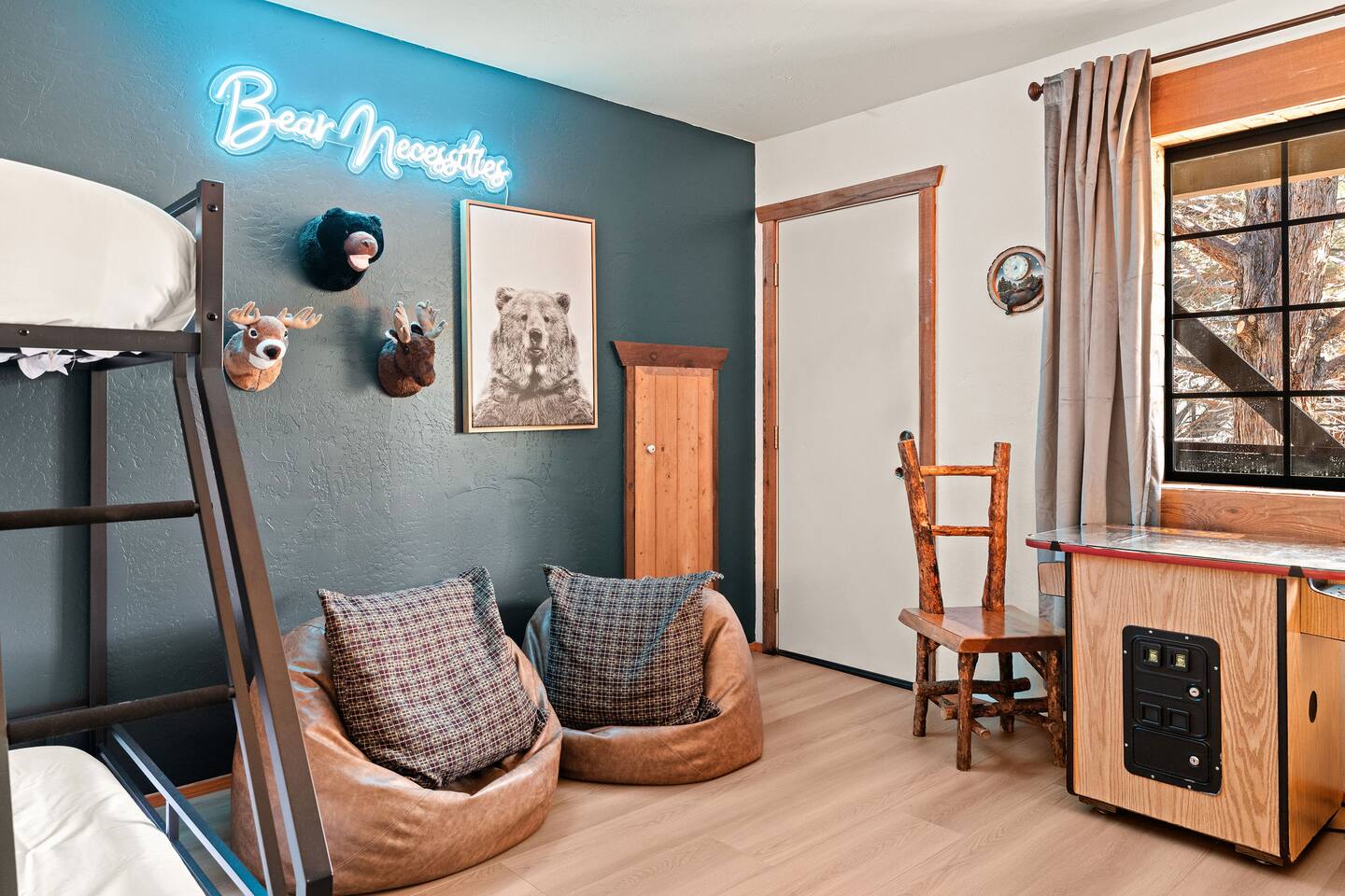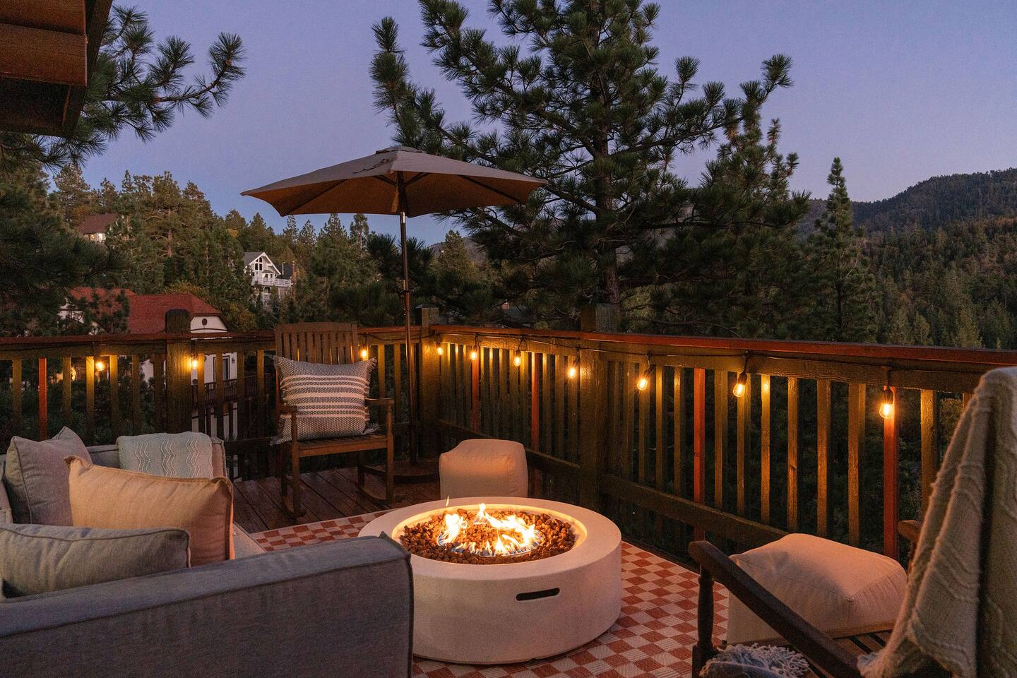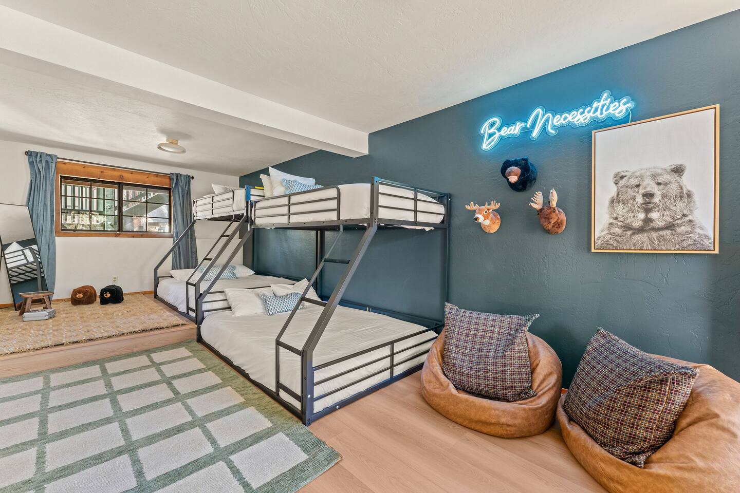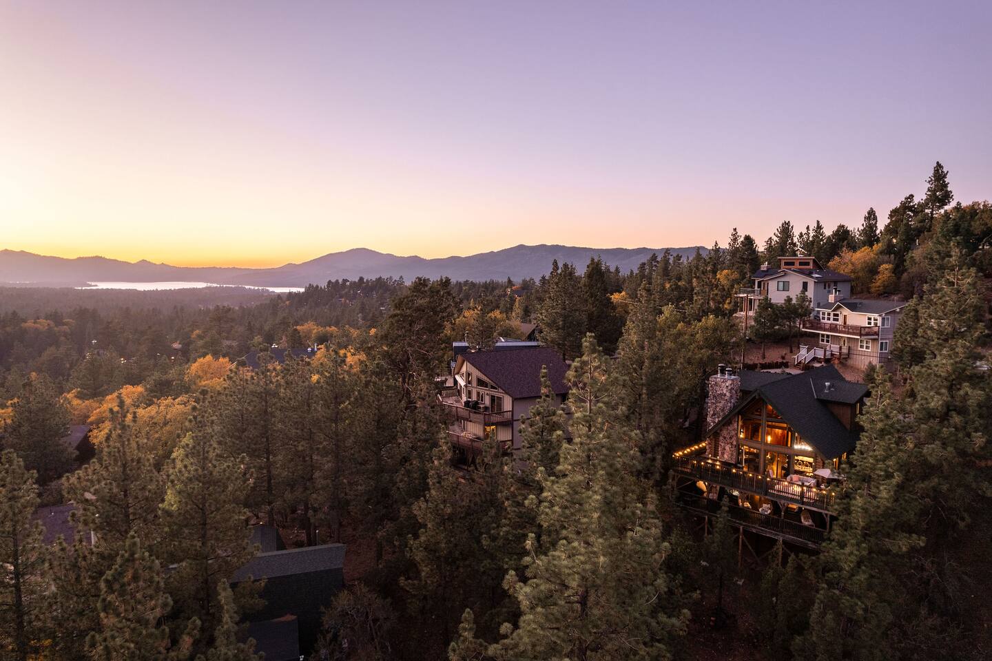 Pet friendly with pet fee - Pet MUST be on the reservation The home provides 5 bedrooms (one being the Bunk Room) and 3 bathrooms. 2 King Sized Beds 2 Queen sized beds 4 Beds in bunkroom (2 bunks with a top and bottom bed - Lower beds are Queen, upper beds are Twin XL) Bathrooms: 3 bathrooms total 1 bathroom on the main level with a tub, 1 bathroom with shower on the loft/upper level, and 1 bathroom with shower on the lower level. Outdoor space includes: Upper Deck: 10 person dining table 2 Rocking Chairs, 4 outdoor ottomans, and an outdoor sofa centered around a propane firepit Large grill String lights for charming ambiance Lower Deck Brand new Bullfrog spa, towel rack, string lights, and 2 lounge chairs 4 hanging egg chairs with pillows and blankets Giant Jenga and Cornhole games stored in our oversized deck box Highlights: 1. HUGE A-FRAME WINDOWS WITH INCREDIBLE VIEWS: You will feel as if you're living among nature with the gorgeous panoramic views and natural light flooding in through the massive windows. Sip some coffee or hot chocolate by the window with a view straight to the Bear Mountain ski slopes. 2. FULLY STOCKED KITCHEN: Our kitchen provides all the amenities for breakfast, lunch or dinner. It features modern appliances, a brand new dishwasher, and a 6-burner gas stovetop - allowing you to prepare delicious meals with ease. Whether you're cooking up a hearty breakfast before heading out to the slopes or whipping up a gourmet dinner to enjoy together. 3. PRIME LOCATION: Located just 1.5 miles from Bear Mountain Ski Resort, 1.7 miles from Big Bear Alpine Zoo, and 1.8 miles from popular breakfast spots Moonridge Coffee and Dank Donuts. Vons and Stater Brothers grocery stores are just around the corner a few miles away and it's a short 10-12 minute drive to the Village and Lake. 4. WHOLE HOUSE GENERATOR: As you may know, Southern California is known to have some Public Safety Power Shutoffs that can put a damper on the fun when the power goes out. Our whole house generator will kick on when the power shuts off to keep the heat on, the hot tub hot and the movies playing. 5. EV CHARGER: Don't stress about where you'll get your next charge from, we've got you! Just bring your car-specific cable and plug right in! 5. ULTIMATE RELAXATION & ENTERTAINMENT: We've gone above and beyond to make your stay truly exceptional. Our property features top-of-the-line amenities, including: a) New Bullfrog spa: Take a break from the brisk weather and soak up the relaxation , or hang out in the tub while watching a sports game on the outdoor TV. b) Pool table, 3 arcade games, and board games: Rack up for a friendly pool competition, or power up the classic arcade games with Street Fighter II, Fast and Furious, or PacMan. The Colusade has everything you need to keep the whole family entertained. c)TVs in EVERY ROOM: Enjoy watching our smart tvs in every bedroom and the bunkroom, the living room, the game room, and by the hot tub. This way you never have to fight for what you want to watch. d) Fun for the littles: From connect 4 and basketball connect 4 in the bunk room to train sets, memory games, and tumbling blocks in the loft - we've got you covered! e) Outdoor Dining and Entertainment: Create the ultimate dining and social experience outside with a large grill, string lights, plenty of seating, and a view worth spending time with. Whether you're planning a family trip, a reunion, or a trip with friends to relax and unwind, The Colusade is guaranteed to delight and designed to entertain all. Book your stay with us today and experience the perfect mix of retro, rustic and modern luxury City of Big Bear Lake Rental Permit 2025-1905 Guest access: Guest will have private access to the entire house. There is keyless entry for easy access and check in. Other things to note Check-in is at 4pm Check-out is at 10am