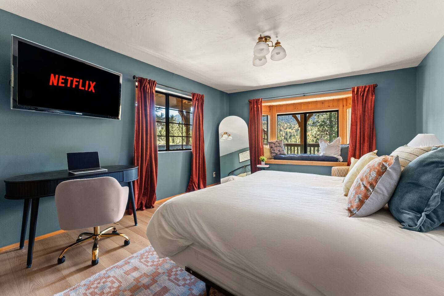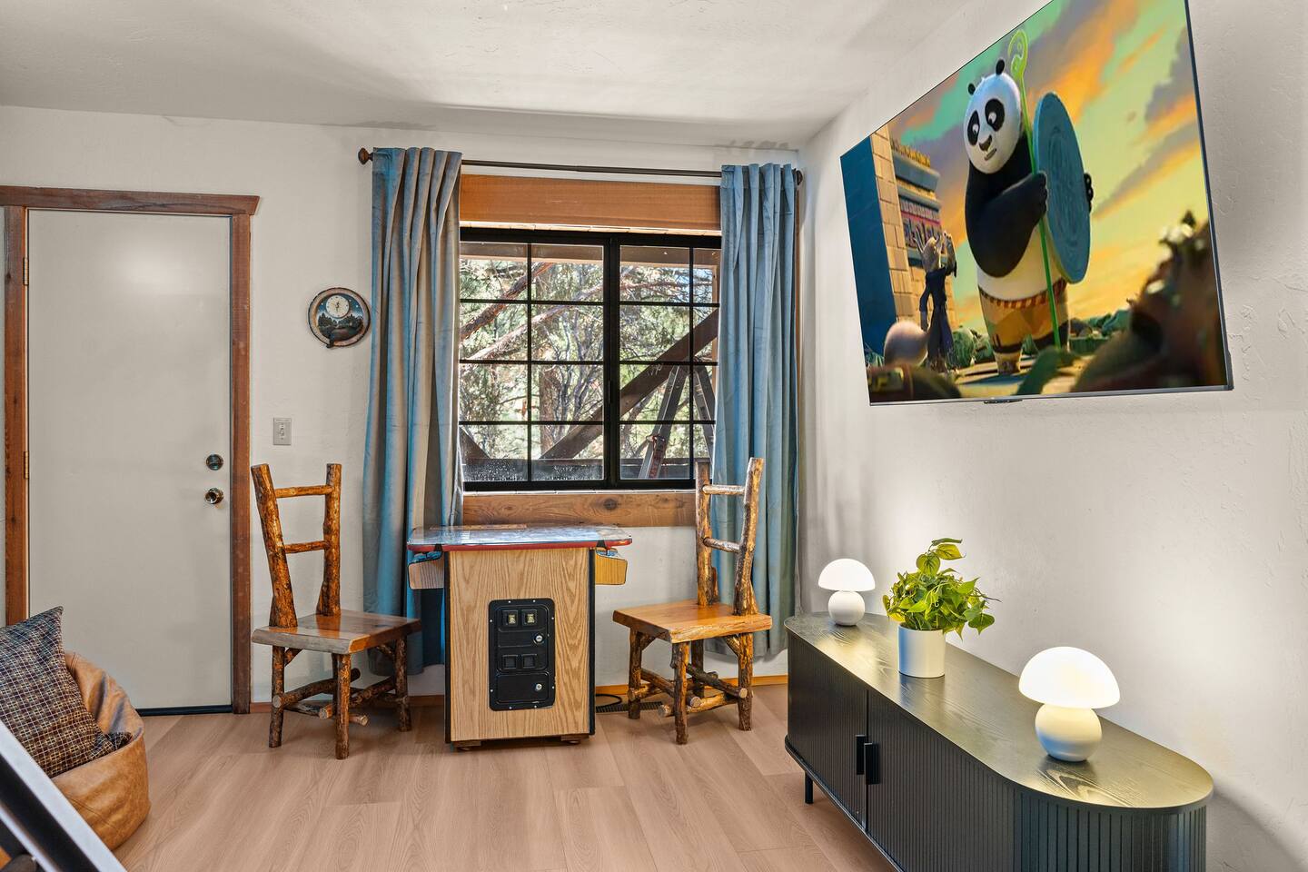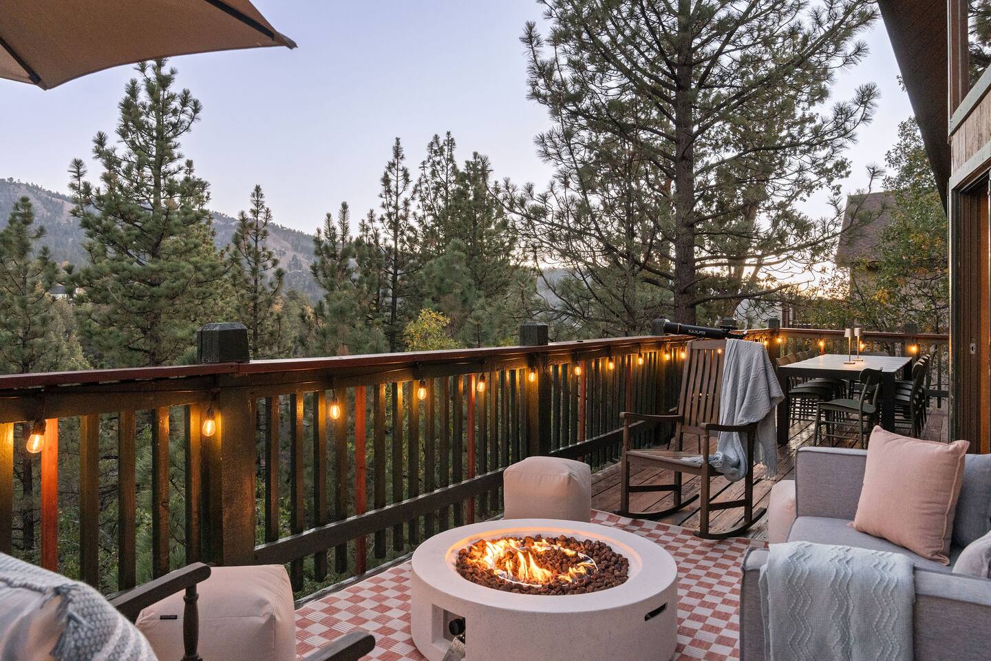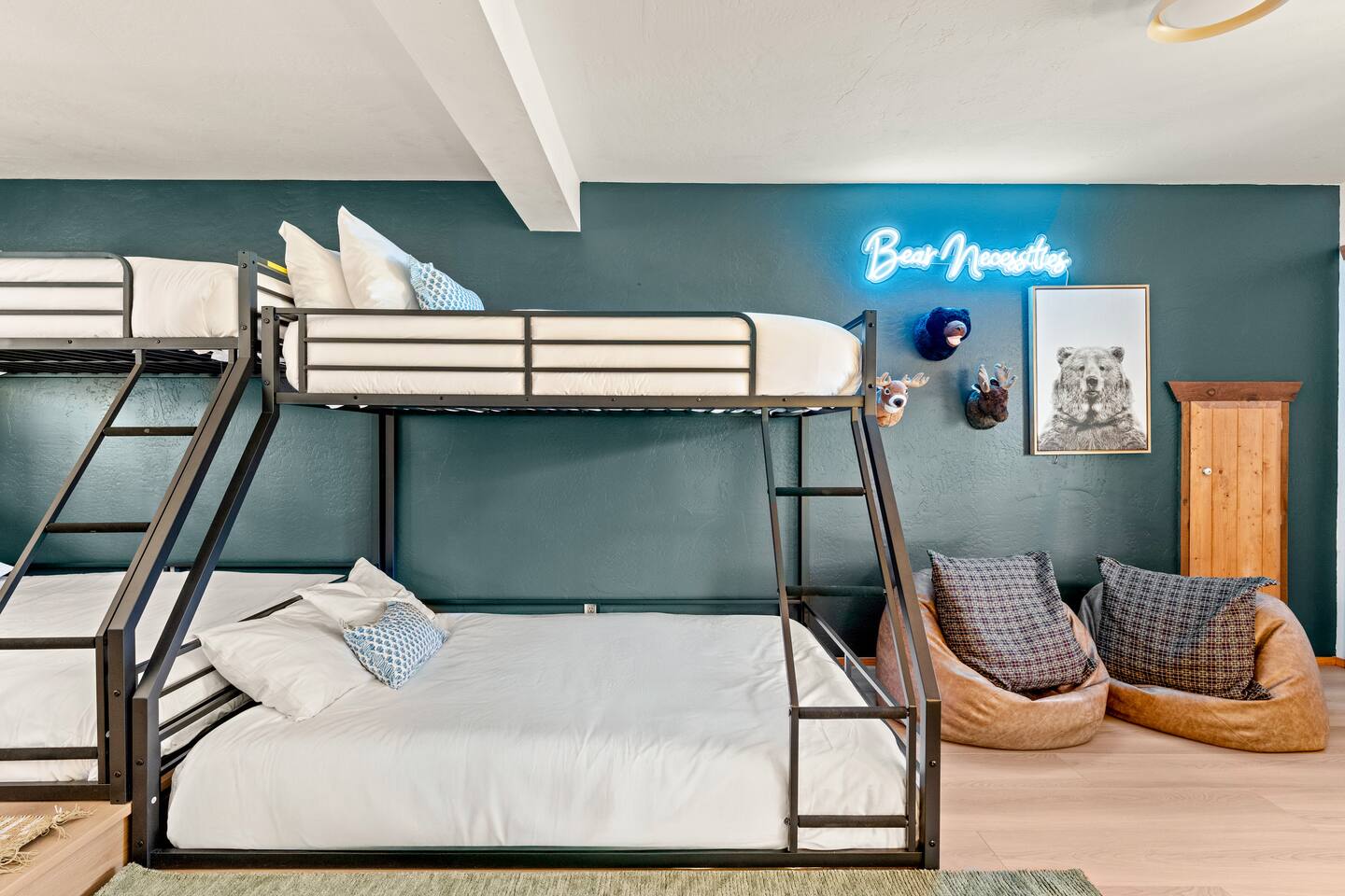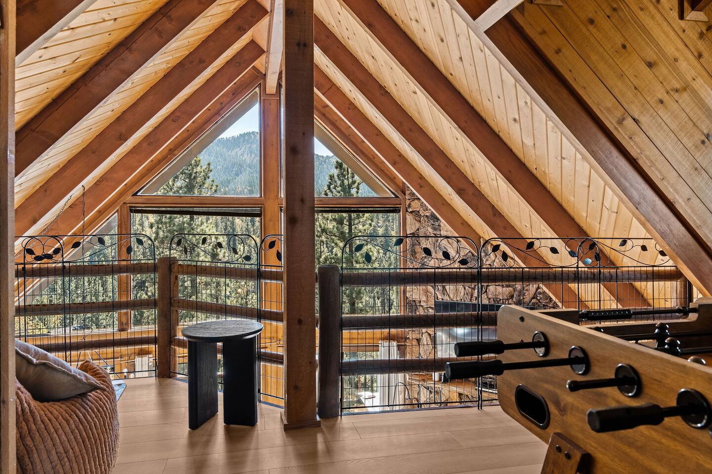 Pet friendly with pet fee - Pet MUST be on the reservation The home provides 5 bedrooms (one being the Bunk Room) and 3 bathrooms. 2 King Sized Beds 2 Queen sized beds 4 Beds in bunkroom (2 bunks with a top and bottom bed - Lower beds are Queen, upper beds are Twin XL) Bathrooms: 3 bathrooms total 1 bathroom on the main level with a tub, 1 bathroom with shower on the loft/upper level, and 1 bathroom with shower on the lower level. Outdoor space includes: Upper Deck: 10 person dining table 2 Rocking Chairs, 4 outdoor ottomans, and an outdoor sofa centered around a propane firepit Large grill String lights for charming ambiance Lower Deck Brand new Bullfrog spa, towel rack, string lights, and 2 lounge chairs 4 hanging egg chairs with pillows and blankets Giant Jenga and Cornhole games stored in our oversized deck box Highlights: 1. HUGE A-FRAME WINDOWS WITH INCREDIBLE VIEWS: You will feel as if you're living among nature with the gorgeous panoramic views and natural light flooding in through the massive windows. Sip some coffee or hot chocolate by the window with a view straight to the Bear Mountain ski slopes. 2. FULLY STOCKED KITCHEN: Our kitchen provides all the amenities for breakfast, lunch or dinner. It features modern appliances, a brand new dishwasher, and a 6-burner gas stovetop - allowing you to prepare delicious meals with ease. Whether you're cooking up a hearty breakfast before heading out to the slopes or whipping up a gourmet dinner to enjoy together. 3. PRIME LOCATION: Located just 1.5 miles from Bear Mountain Ski Resort, 1.7 miles from Big Bear Alpine Zoo, and 1.8 miles from popular breakfast spots Moonridge Coffee and Dank Donuts. Vons and Stater Brothers grocery stores are just around the corner a few miles away and it's a short 10-12 minute drive to the Village and Lake. 4. WHOLE HOUSE GENERATOR: As you may know, Southern California is known to have some Public Safety Power Shutoffs that can put a damper on the fun when the power goes out. Our whole house generator will kick on when the power shuts off to keep the heat on, the hot tub hot and the movies playing. 5. EV CHARGER: Don't stress about where you'll get your next charge from, we've got you! Just bring your car-specific cable and plug right in! 5. ULTIMATE RELAXATION & ENTERTAINMENT: We've gone above and beyond to make your stay truly exceptional. Our property features top-of-the-line amenities, including: a) New Bullfrog spa: Take a break from the brisk weather and soak up the relaxation , or hang out in the tub while watching a sports game on the outdoor TV. b) Pool table, 3 arcade games, and board games: Rack up for a friendly pool competition, or power up the classic arcade games with Street Fighter II, Fast and Furious, or PacMan. The Colusade has everything you need to keep the whole family entertained. c)TVs in EVERY ROOM: Enjoy watching our smart tvs in every bedroom and the bunkroom, the living room, the game room, and by the hot tub. This way you never have to fight for what you want to watch. d) Fun for the littles: From connect 4 and basketball connect 4 in the bunk room to train sets, memory games, and tumbling blocks in the loft - we've got you covered! e) Outdoor Dining and Entertainment: Create the ultimate dining and social experience outside with a large grill, string lights, plenty of seating, and a view worth spending time with. Whether you're planning a family trip, a reunion, or a trip with friends to relax and unwind, The Colusade is guaranteed to delight and designed to entertain all. Book your stay with us today and experience the perfect mix of retro, rustic and modern luxury City of Big Bear Lake Rental Permit 2025-1905 Guest access: Guest will have private access to the entire house. There is keyless entry for easy access and check in. Other things to note Check-in is at 4pm Check-out is at 10am